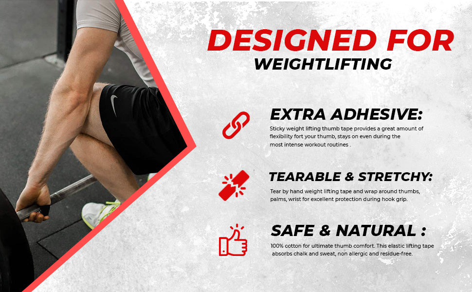 EXTRA ADHESIVE: Train with absolute confidence, knowing our wrist straps for weightlifting boasts an exceptional level of adhesive strength. This adhesive tape ensures that once applied, the thumb support stays firmly in place, eliminating the need for frequent readjustments during your workouts. With this remarkable adhesive, our sports tape becomes your reliable companion, ensuring a secure and hassle-free grip, workout after workout