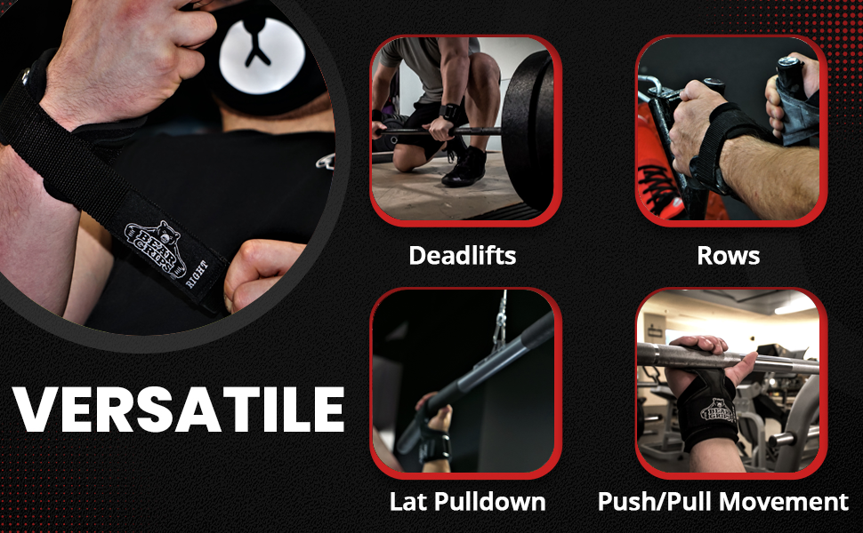 Push and pull movements: With Bear Grips you can leave the pad in your palm for grip for pushing movements like a bench press. Where Bear Grips shine in on pulling movements. Back days will never be the same, whether it's a row, lat pulldown, or deadlift you're ready with your deadlift straps by Bear Grips. Bear Grips are versatile, they are a bodybuilding & powerlifting dream, especially as lifting wrist straps