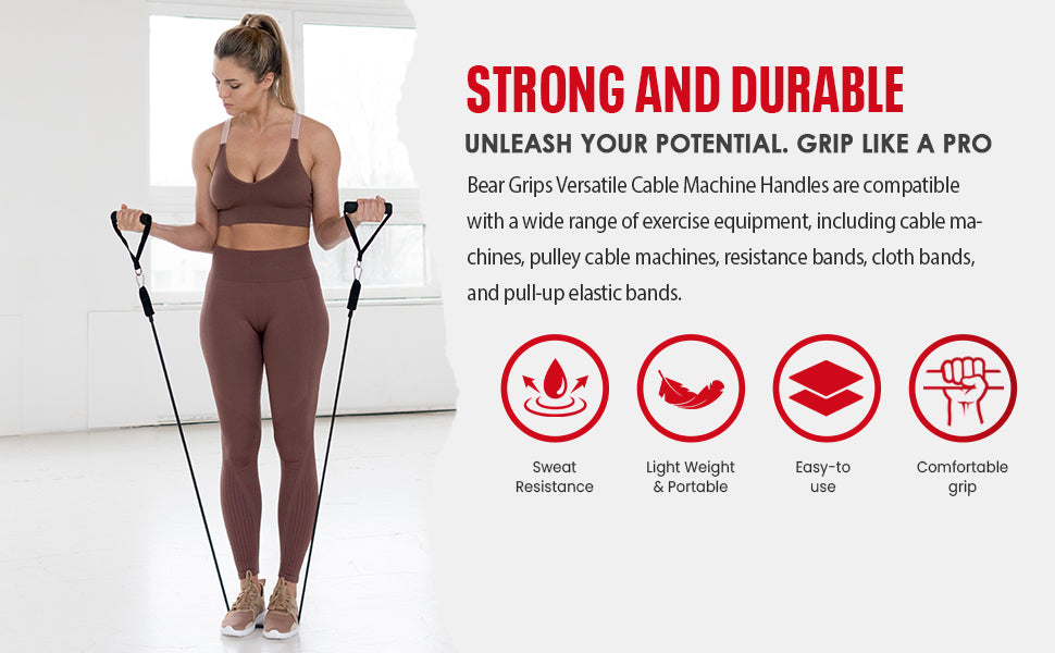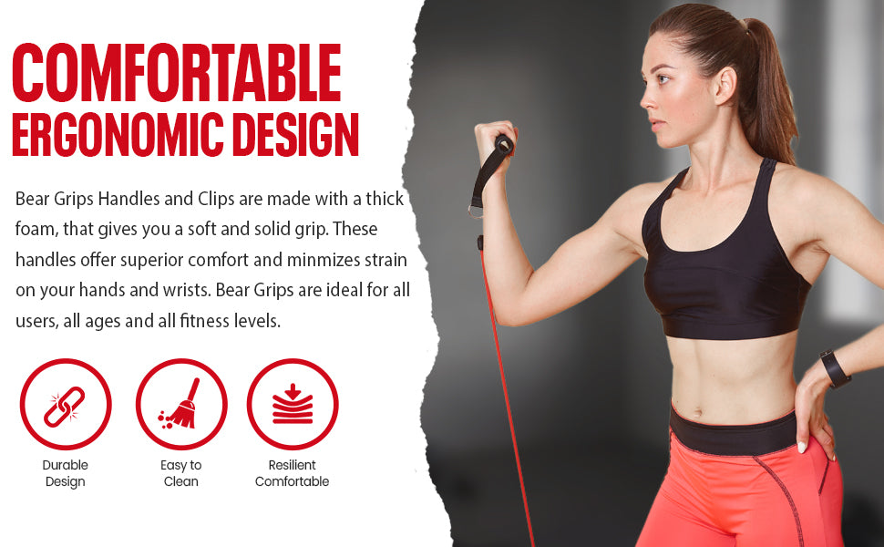 HEAVY-DUTY CONSTRUCTION: The robust construction of Bear Grips core workout equipment heavy duty resistance bands attachment handles make them exceptionally strong and durable. This durability of our exercise & fitness accessories handles with clip ensures they are well-suited for intense and regular use, providing you with a reliable and long-lasting fitness accessory that can withstand the rigors of your workout routine